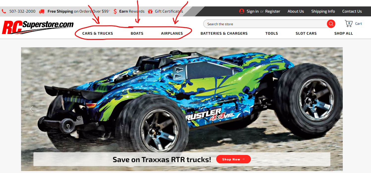Want to shop our entire selection of RC cars, trucks, boats, and airplanes? We've made it super simple for you to find exactly what you're looking for—just click on the type of vehicle you want at the top of the page!