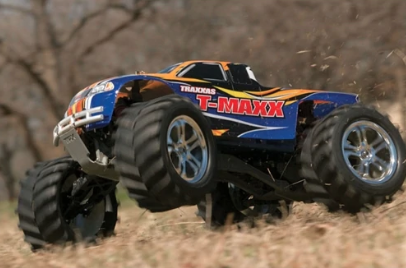 This is a more traditional monster truck design than the Revo; it features many of the advanced features, including telemetry and Bluetooth control, but it is lighter and easier to control thanks to the Traxxas Stability Management (TSM) module, which can keep the T-Maxx rolling on a straight line when you apply the brakes. The stock body of the T-Maxx resembles a standard monster truck, but it can be easily swapped.